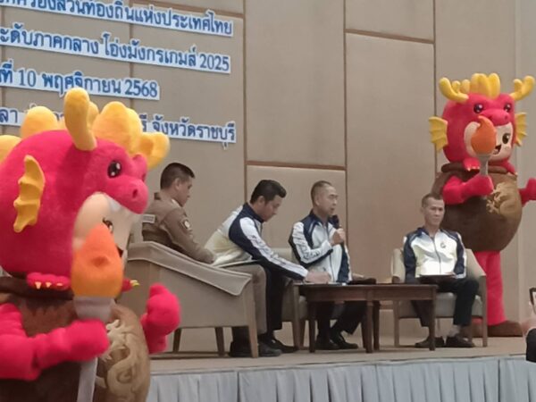 ที่ห้องประชุมโรงแรม ณ เวลา อ.เมือง จ.ราชบุรีเวลา9.00น. นายคมกริช เจริญพัฒนาสมบัติ รองผู้ว่าราชการ จ.ราชบุรี เป็นประธานเปิดแถลงข่าว พร้อมด้วยนายธนศักดิ์ มาคะสิระ นายกเทศบาลเมืองวัดเพลง ประธานสมาคมสันนิบาตเทศบาลแห่งประเทศไทยภาคกลาง ร่วมแถลงข่าวและจับสลากแบ่งสายกีฬาโดยมีนายศักดิ์ชัย พิศาลผล นายกเทศบาลเมืองราชบุรีผู้จัดการแข่งขัน ให้การต้อนรับพร้อมคณะกรรมการจัดการแข่งขันกีฬานักเรียนองค์กรปกครองส่วนท้องถิ่น “โอ่งมังกรเกมส์ 2025 “ครั้งที่ 40/2568 ระหว่างวันที่ 27 พ.ย. 68 ถึง 6 ธ.ค. 68 ณ.สนามกีฬาใน จ.ราชบุรี โดยมีหัวหน้าส่วนราชการ ทหาร ตำรวจ ฝ่ายปกครอง ร่วมแถลงข่าวในครั้งนี้มีชนิดกีฬาที่แข่งขันมี 16 ชนิดกีฬาสำหรับวันนี้แถลงข่าวและประชุมจับสลากแบ่งสายกีฬา จัดโดยองค์กรปกครองส่วนท้องถิ่นแห่งประเทศไทย ครั้ง