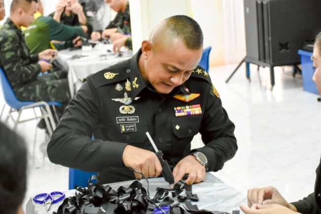 มณฑลทหารบกที่ 210 ร่วมกับ สถาบันพัฒนาฝีมือแรงงาน 41 นครพนม จัดทำโบเพื่อแสดงความ