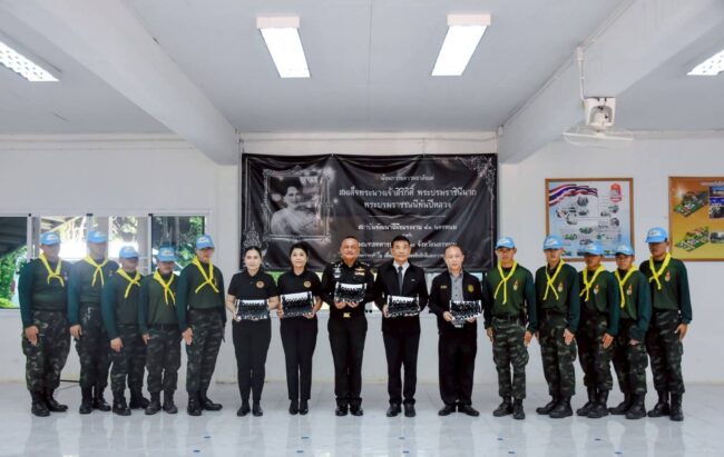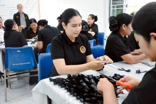 ความอาลัยแด่สมเด็จพระนางเจ้าสิริกิติ์ พระบรมราชินีนาถ พระบรมราชชนนีพันปีหลวง เมื่อวันที่ 11 พฤศจิกายน 2568 เวลา 09.30 น. ผบ.มทบ.210 มอบหมายให้ พ.อ.ธนาธิป เรียงอิศราง รอง ผบ.มทบ.210 นำกำลังพลนายทหาร นายสิบ ทหารกองประจำการ และสมาชิกสมาคมแม่บ้าน ทบ. สาขา. มทบ.210 บูรณาการร่วมกับสำนักงานพัฒนาฝีมือแรงงานที่ 41 นครพนม ในการดำเนินการจัดทำโบสีดำ ถวายความอาลัยแด่สมเด็จพระนางเจ้าสิริกิติ์ พระบรมราชินีนาถ พระบรมราชชนนีพันปีหลวง เพื่อรวบรวมนำไปแจกให้ประชาชน เพื่อแสดงออกถึงความจงรักภักดีและถวายอาลัย โดยมี นายวิระศักดิ์ แก้วบุดดา ผอ.สถาบันพัฒนาฝีมือ