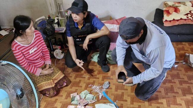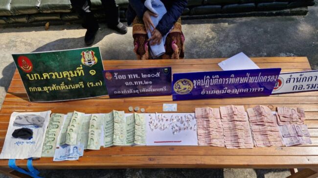 เส้นทางลำเลียงยานรก ก่อนกระจายเข้าหมู่บ้าน เมื่อวันที่ 14 พ.ย.68 เวลา 09.00 น.ชาวบ้านในพื้นที่ตำบลคำอาฮวน อำเภอเมืองมุกดาหาร จังหวัดมุกดาหาร สุดทนแก๊งค้ายาบ้าในพื้นที่ ลักลอบขายาบ้าให้กับกลุ่มวัยรุ่นและผู้ใช้แรงงาน ซึ่งราคาเม็ดละ 40 บาท ซึ่งเป็นราคาเข้าถึงได้ง่าย จึงเข้าแจ้งเบาะแสให้กับ ร้อยโท วันชาติ เหมือนปืน ผู้บังคับกองร้อยเฉพาะกิจทหารพรานที่ 2105 หน่วยเฉพาะกิจกรมทหารพรานที่ 21 จึงบูรณาการร่วมกับฝ่ายปกครอง และหน่วยงานความมั่นคงในพื้นที่ อำเภอเมืองมุกดาหาร ดำเนินการปฏิบัติการตามนโยบาย การป้องกัน สกัดกั้นและปราบปรามยาเสพติดของรัฐบาล Quick Big Win “รวมพลัง รักศรัทธาแก้ปัญหายาเสพติดแบบบูรณาการ บังคับใช้กฎหมายเข้าปิดล้อมตรวจค้นต่อผู้กระทำผิดกฎหมาย ตาม พรบ.ยาเสพติด ตัดตอนเส้นทางลำเลียงยานรก ก่อนกระจายเข้าหมู่บ้าน บ้านเลขที่ 215 หมู่ที่ 8 ตำบลคำอาฮวน อำเภอเมืองมุกดาหาร จังหวัดมุกดาหาร โดยใช้บัตรเจ้าพนักงาน ป.ป.ส.หมายเลขบัตร 6702245 ตามที่ได้รับแจ้งจากแหล่งข่าว่า มีการลักลอบจำหน่าย ยาบ้าให้กับกลุ่มวัยรุ่นในพื้นที่ สร้างความวิตกกังวลให้กับชาวบ้านในพื้นที่อย่างมาก จึงได้เดินทางเข้าตรวจสอบตามที่ได้รับแจ้งแหล่งข่าว เมื่อเดินทางถึง ชุดปฏิบัติร่วมได้ตรวจพบนางสมเพียร พิมพ์เครื่อง อายุ 54 ปี อาศัยอยู่ภายในบ้าน เจ้าหน้าที่จึงได้เข้าแสดงความบริสุทธิ์ใจก่อนทำการตรวจค้น ผลการตรวจค้น พบยาบ้าบรรจุอยู่ในซองพลาสติก ใสจำนวนหลายถุง ซุกซ่อนอยู่ในถุงเท้าที่ยัดไว้ในกระสอบเสื้อผ้าเก่าข้างตู้เสื้อผ้าภายในบ้าน และพบ