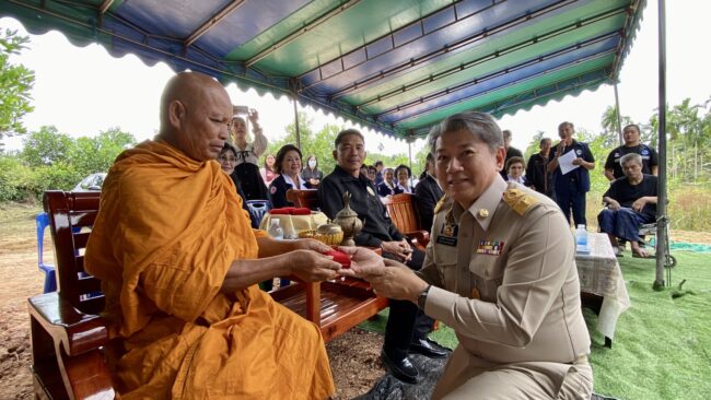 เวลา 13 .29 น. ณ หมู่บ้านห้วงน้ำเค็ม หมู่ที่ 8 ตำบลสนามไชย อำเภอนายายอาม จ.จันทบุรี นายมนต์สิทธิ์ ไพศาลธนวัฒน์ ผู้ว่าราชการจังหวัดจันทบุรี นายพีระศักดิ์ สนั่นเครื่อง นายอำเภอนายายอาม นางโสภิตนภา ประกอบความดี รองนายกเหล่ากาชาด พร้อมด้วยคณะกรรมการและสมาชิกเหล่ากาชาดจังหวัดจันทบุรี พระใบฎีกาลำแพ สัทธาธิโก เจ้าอาวาสวัดห้วงน้ำเค็มวนาราม นายองอาจ พฤกษากิจ นายกเทศมนตรีตำบลสนามไชย ในนามตัวแทนของข้าราชการและประชาชนชาวตำบลสนามไชย รู้สึกยินดีเป็นอย่างยิ่งที่ได้มีโอกาสต้อนรับ และให้เกียรติมาเป็นประธานในพิธีมอบบ้าน โครงการบ้านรัฐร่วมราษฎร์ กาชาดร่วมใจ เฉลิมพระเกียรติสมเด็จพระกนิษฐาธิราชเจ้า กรมสมเด็จพระเทพรัตนราชสุดาฯ สยามบรมราชกุมารี ประจำปี พศ. 2568 จำนวน 1 หลัง งบประมาณ 100,000 บาท และผู้นำที่ท้องถิ่น ได้จัดหางบประมาณเพิ่มเติมในส่วนของระบบไฟฟ้าและระบบน้ำประปาส่วนภูมิภาค รวมถึงแรงงานในการก่อสร้าง กรณีนายประสิทธิ์ คุณเอนก อยู่บ้านเลขที่ 20 หมู่ที่แปดตำบลสนามไชยชยอำเภอนายายอาม จังหวัดจันทบุรี ทั้งนี้โดยนายน้อย เทียมสุข ผู้ใหญ่บ้านหมู่ที่ 8 บ้านห้วงน้ำเค็มและเทศบาลตำบลสนามไชย เพื่อเสนอรายชื่อให้เหล่ากาชาดจังหวัดจันทบุรีเพื่อประกอบการพิจารณาคัดเลือกซึ่งเป็นความโชคดีอย่างยิ่งที่ นายประสิทธิ์ คุณเอนก ได้รับการพิจารณาคัดเลือกในครั้งนี้
