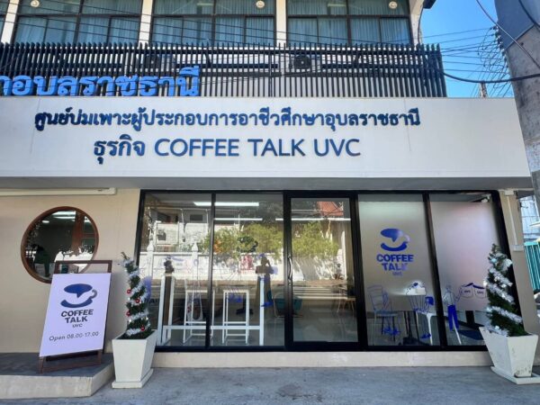 ทั้งนี้ร้านกาแฟ COFFEE TALK UVC ที่ตั้งอยู่ที่บริเวณหัวมุมสี่แยกวิทยาลัยอาชีวศึกษาอุบลราชธานี ตรงข้ามเยื้องประตูทางเข้าวัดศรีอุบลรัตนาราม อำเภอเมือง จังหวัดอุบลราชธานี ดำเนินงานโดยศูนย์บ่มเพาะผู้ประกอบการอาชีวศึกษา ร่วมกับแผนกวิชาการโรงแรม วิทยาลัยอาชีวศึกษาอุบลราชธานี เป็นร้านกาแฟมุมพักผ่อนสบายๆ น่ารักๆ และลงตัวสไตล์อบอุ่นและเป็นกันเอง เพื่อเปิดพื้นที่ให้บริการสำหรับผู้ที่ชื่นชอบเครื่องดื่มทั้งร้อนและเย็น ในเมนูที่หลากหลายให้สัมผัสลิ้มลอง ในราคาเริ่มต้นแก้วละ 45 บาท อาทิ กาแฟเมนูรสชาติต่างๆ พร้อมด้วยมัจฉะมะพร้าว มัจฉะลาเต้ มัจฉะสตอเบอรี่ อโวคาโด้ปั่น มิกซ์ชาไทยชาเขียนทูโทน ชากุหลาบ ชาทูโทน ขาเชียวน้ำผึ้งมะนาว โกโก้มิ้นท์/ช็อคมิ้นท์ สตอเบอรี่สมูทตี้ เป็นต้น