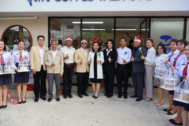 สนับสนุนรายได้ ผู้เรียนอาชีวศึกษาวันที่ 3 ธันวาคม 2568 วิทยาลัยอาชีวศึกษาอุบลราชธานี นำโดยนางสาวลฎาภา แสวงทรัพย์ ผู้อำนวยการวิทยาลัยอาชีวศึกษาอุบลราชธานี นำคณะครูและนักเรียน นักศึกษา วิทยาลัยอาชีวศึกษา จัดพิธีเปิดร้านกาแฟ COFFEE TALK UVC วิทยาลัยอาชีวศึกษาอุบลราชธานี อย่างเป็นทางการในเทศกาล เค้ก คุกกี้ ของขวัญปีใหม่ 2569 “สุขใจผู้ให้ ถูกใจผู้รับ” โดยมี ดร.ประดิษฐ์ พาชื่น ผู้อำนวยการสถาบันการอาชีวศึกษาภาคตะวันออกเฉียงเหนือ 4 เป็นประธานในพิธีเปิด
