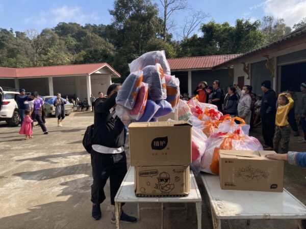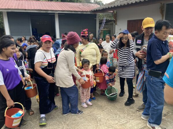 หย่อมบ้านที่เดินทางมารับโดยทางคณะได้ส่งมอบให้กับผู้ใหญ่บ้านพร้อมคณะกรรมการหมู่บ้านได้ร่วมแจกจ่ายแก่ประชาชนที่ขาดแคลนตามความจำเป็นที่ทางผู้ใหญ่บ้านได้คัดเลือกที่ยากจนมากก่อน ในพื้นที่จะมีประชาชนอยู่อาศัยกันหลายชาติพันธ์ ไทยใหญ่ ลาหู่ พื้นเมือง ที่อาศัยอยู่ร่วมกันตามแนวชายแดน อย่างสงบสุขรักสามัคคีกันตลอดมา จากนั้นได้ร่วมมอบสิ่งของให้กับทหารพรานที่ปฏิบัติการรักษาชายแดนที่บ้านกิ่วฮุง ตำบลแม่อาย อำเภอแม่อาย จังหวัดเชียงใหม่อีกจำนวนหนึ่งเพื่อเป็นการให้กำลังใจพี่น้องทหารหาญ