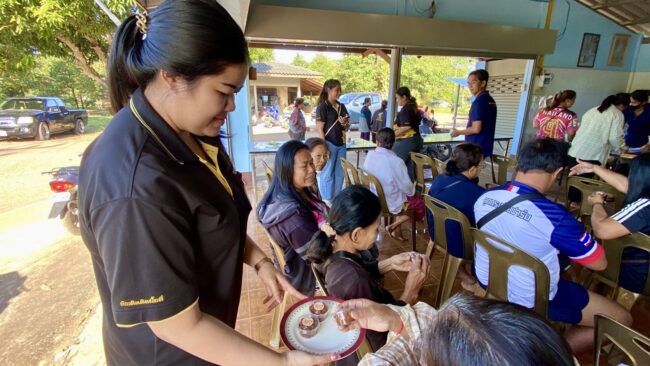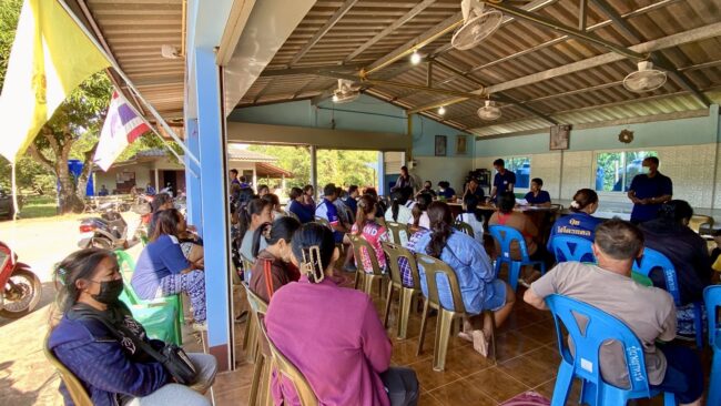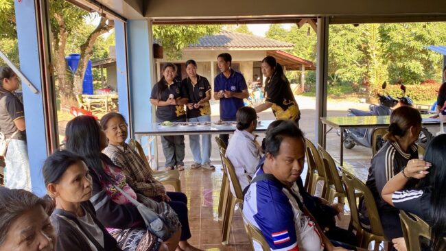 วันที่ 10 ธันวาคม 2568 เวลา 09.00 น. ณ ศาลากลางบ้านบ้านช้างข้าม หมู่ที่ 5 ตำบลช้างข้าม อำเภอนายายอาม จังหวัดจันทบุรี โดยวันนี้นายอำนาจ มาลีวรรณ์ ผู้ใหญ่บ้าน และคณะกรรมการหมู่บ้าน ได้เรียกประชุมใหญ่ประจำปี 2568 ของสมาชิกกองทุนหมู่บ้าน กลุ่มสัจจะออมทรัพย์เพื่อการผลิต ซึ่งมีชาวบ้านในเขตหมู่ที่ 5 บ้านช้างข้าม ชาวบ้านมาเป็นจำนวนมาก ซึ่งเป็นโอกาสดีที่ นักศึกษาคณะมนุษศาสตร์ สาขารัฐศาสตร์ มหาวิทยาลัยรำไพพรรณี จันทบุรี ซึ่งเป็นกลุ่มศึกษาและวิจัยหมอคางดำ และวันนี้ คณะนักศึกษาสาขารัฐศาสตร์ ได้นำน้ำพริกปลาหมอข้างดำ นำมาแจกกับพี่น้องประชาชนที่เข้าร่วมประชุมใหญ่ ที่ศาลาหมู่บ้านบ้านช้างข้ามแห่งนี้ ซึ่งนักศึกษากลุ่มนี้ ก็ได้จัดทำน้ำพริกปลาหมอคางดำ นำมาแจกให้พี่น้องประชาชน เอากลับไปรับประทานกับข้าวที่บ้าน ซึ่งการทำน้ำพริกปลาหมอคางดำ ในครั้งนี้เนื่องจาก วิกฤตการระบาดของปลาหมอคางดำ