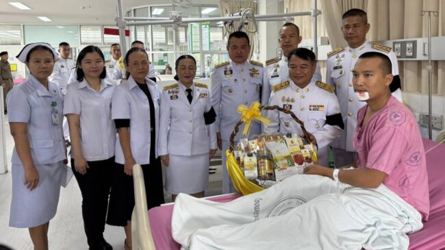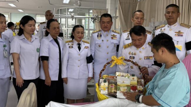 ดอกไม้และกระเช้าสิ่งของแก่ทหารผู้บาดเจ็บจากเหตุชายแดนไทย-กัามพูชาในพื้นที่จังหวัดสุรินทร์ จำนวน 19 นาย emoji เมื่อวันที่ 13 ธันวาคม 2568 เวลา 09.30 น. พระบาทสมเด็จพระเจ้าอยู่หัวได้ทรงพระกรุณาโปรดเกล้าโปรดกระหม่อมให้ นายจำเริญ แหวนเพ็ชร ผู้ว่าราชการจังหวัดสุรินทร์ นำแจกันดอกไม้และกระเช้าสิ่งของพระราชทานไปมอบแก่ทหาร ที่ได้รับบาดเจ็บจากเหตุการณ์ความไม่สงบบริเวณชายแดนไทย-กัมพูชาในพื้นที่จังหวัดสุรินทร์ เพื่อเป็นขวัญกำลังใจและแสดงถึงความห่วงใยของพระองค์ต่อผู้ที่เสียสละเพื่อประเทศชาติ ในการนี้