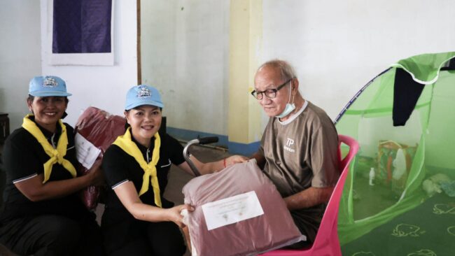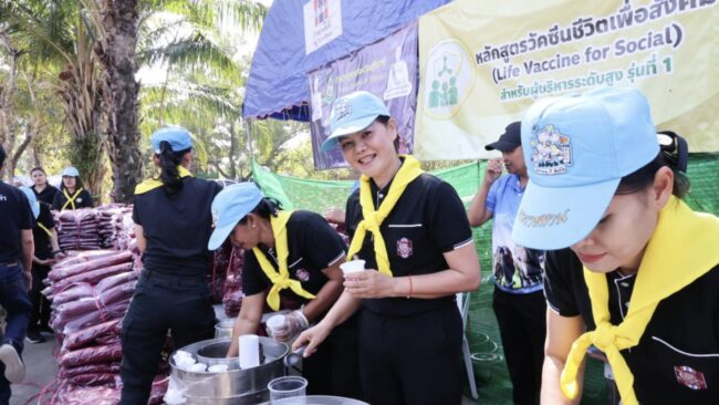ชีวิตเพื่อสังคม วันที่ 19 ธ.ค. 2568 เวลา 13.00 น. พล.ต.ต.สุคนธ์ ศรีอรุณ ผบก.ภ.จว.สุรินทร์ พร้อมด้วย พ.ต.อ.ชัยณรงค์ บุญด้วง รอง ผบก.ภ.จว.สุรินทร์ พ.ต.อ.นพดล ช่วยบุญ ผกก.สภ.ศีขรภูมิ นำข้าราชการตำรวจในสังกัด คณะแม่บ้านตำรวจภูธรจังหวัดสุรินทร์ และข้าราชการตำรวจจิตอาสา ลงพื้นที่ตรวจเยี่ยมและให้กำลังใจประชาชน ณ ศูนย์พักพิงชั่วคราว อ.ศีขรภูมิ จ.สุรินทร์ ในการนี้ คณะฯ ได้นำสิ่งของอุปโภคบริโภค ประกอบด้วย ผ้าห่มจำนวน 500 ผืน เพื่อบรรเทาภัยหนาว และ ไอศกรีมกะทิ 8 ถัง มามอบให้แก่ผู้ประสบภัย ซึ่งได้รับการสนับสนุนจาก หลักสูตรวัคซีนชีวิตเพื่อสังคม Life Vaccine for Social รุ่นที่ 1 เพื่อเป็นการส่งต่อความห่วงใยและสร้างรอยยิ้มให้กับพี่น้องประชาชนในพื้นที่ บรรยากาศเต็มไปด้วยความอบอุ่นและเป็นกัน ตำรวจภูธรจังหวัดสุรินทร์พร้อมเคียงข้างประชาชนในทุกวิกฤต โดยจะร่วมกับทุกภาคส่วนในการดูแลความปลอดภัย อำนวยความสะดวก และให้ความช่วยเหลืออย่างเต็มกำลังจนกว่าสถานการณ์จะคลี่คลายและกลับสู่ภาวะปกติ