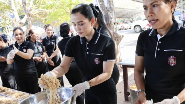 แม่บ้าน ตำรวจสุรินทร์ ลงพื้นที่ศูนย์พักพิงฯ มอบอาหาร ขวัญกำลังใจแก่ผู้ประสบภัยชายแดน จังหวัดสุรินทร์