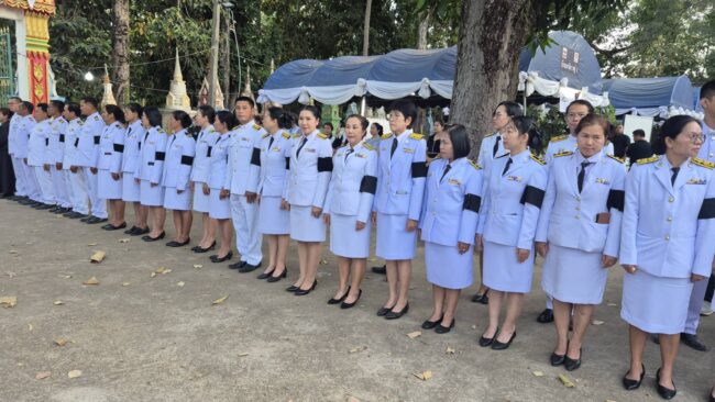 บ้านหนองจาน กลับสู่มาตุภูมิที่ จ.อำนาจเจริญ อย่างสมเกียรติ วันนี้ 25 ธ.ค. 2568 ร่างของ พลทหาร ธนพัฒน์ นันทะวงศ์ ถูกเคลื่อนออกจากสนามบิน กองบิน 21 จ.อุบลราชธานี โดยรถยนต์ มาถึงยังวัดเชือกนอก ตำบลนาจิก อ.เมืองอำนาจเจริญ จังหวัดอำนาจเจริญ ในเวลา 13.00 น. มีนายพรชัย วงศ์งาม ปลัดจังหวัดอำนาจเจริญ ทหารกองเกียรติยศ หัวหน้าส่วนราชการ ตำรวจ นักเรียน ญาติพี่น้องและประชาชนมาร่วมรอรับร่างทหารกล้า พร้อมยืนโบกสะบัดธงชาติไทยแสดงความอาลัยและสดุดีความกล้าหาญ ยกย่อง พลทหารไอน้ำ เป็นวีรบุรุษทหารกล้าของแผ่นดิน ท่ามกลางบรรยากาศแห่งความโศกเศร้าและความภาคภูมิใจของชาวบ้านในพื้นที่ จากนั้น นายพรชัย วงศ์งาม ปลัดจังหวัดอำนาจเจริญ ได้เป็นประธานในพิธีรดน้ำศพ ซึ่งมีหัวหน้าส่วนราชการ ทหาร ตำรวจ บิดา มารดา และญาติของ พลทหารธนพัฒน์ นันทะวงศ์ รวมทั้งประชาชนเข้าร่วมรดน้ำศพอย่างเนืองแน่น