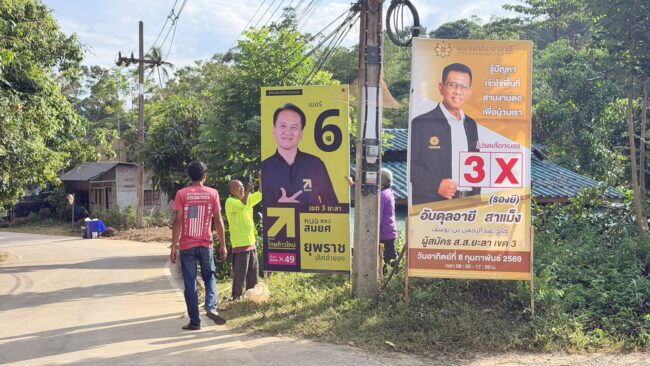 ยะลา -บรรยากาศหาเสียงเลือกตั้งเขตเลือกตั้งที่ 3 พื้นที่ อ.เบตง จ.ยะลา เริ่มคึกคัก ทีมงานผู้สมัครเร่งติดตั้งป้ายหาเสียงทั่วเมืองเบตง วันนี้ 16 ม.ค. 69 บรรยากาศการติดตั้งป้ายหาเสียงของผู้สมัครรับเลือกตั้งสมาชิกสภาผู้แทนราษฎรในพื้นที่ของอำเภอเบตง จังหวัดยะลา พบว่าทีมงานจากพรรคการเมืองต่าง ๆ เริ่มกระจายกำลังลงพื้นที่อย่างต่อเนื่อง ในการติดตั้งป้ายหาเสียงของแต่ละผู้สมัคร โดยเน้นจุดยุทธศาสตร์สำคัญ บริเวณชุมชนต่างๆในเขตเทศบาลเมืองเบตง ตามหลักเกณฑ์ ที่ กกต. กำหนด เพื่อควบคุมการหาเสียงให้เป็นไปตามกฎหมาย ลดความได้เปรียบเสียเปรียบ และสร้างบรรยากาศการเลือกตั้งที่เป็นธรรม โปร่งใส และเคารพสิทธิของทุกฝ่าย ทำให้บรรยากาศหาเสียงเลือกตั้งเริ่มคึกคักขึ้นอีกครั้ง จากการสังเกต พบว่าป้ายหาเสียงในรอบนี้มีปริมาณป้ายหาเสียงไม่มาก เมื่อเทียบกับการเลือกตั้งในอดีต เพื่อหลีกเลี่ยงปัญหาการกีดขวางทางเดินเท้า และลดการบดบังทัศนวิสัยของผู้ใช้รถใช้ถนน ซึ่งเป็นประเด็นที่ถูกร้องเรียนมาอย่างต่อเนื่องในหลายยุคสมัยในการเลือกตั้งที่ผ่านมา