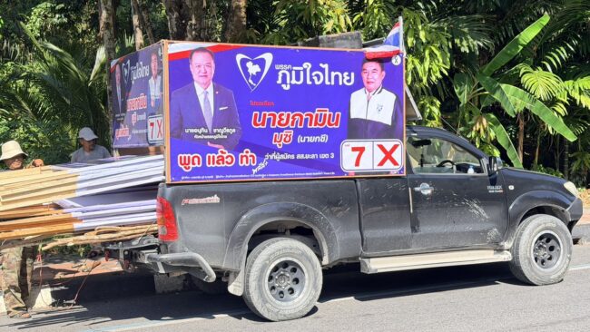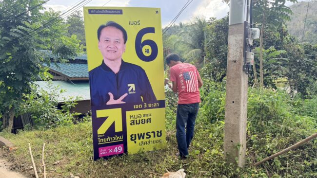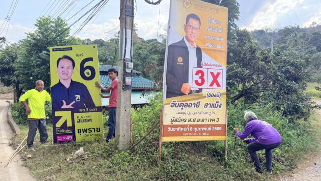 ยะลา ทีมงานผู้สมัครเร่งติดตั้งป้ายหาเสียงทั่วเมืองเบตง