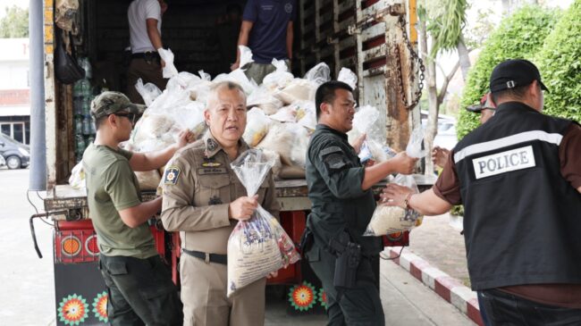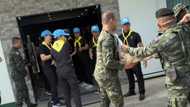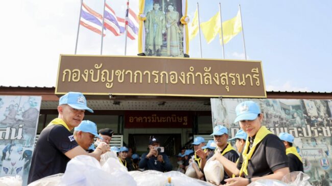 เมื่อวันที่ 20 มกราคม 2569 เวลา ประมาณ 12.00 น. พล.ต.ต.สุคนธ์ ศรีอรุณ ผบก.ภ.จว.สุรินทร์ นำข้าราชการตำรวจในสังกัด ฝอ.ภ.จว.สุรินทร์ กก.สส.ภ.จว.สุรินทร์ ร่วมดำเนินการรับมอบ ลำเลียงถุงยังชีพจำนวน 1,000 ชุด พร้อมน้ำดื่ม 500 แพ็ค ซึ่งตำรวจภูธรภาค 5 เป็นผู้ประสาน รวบรวมจากคณะสงฆ์ จ.เชียงใหม่ ผู้มีจิตศรัทธาในพื้นที่ ก่อนจัดส่งมายังตำรวจภูธรภาค 3 และตำรวจภูธร จ.สุรินทร์ เพื่อใช้สนับสนุนการปฏิบัติหน้าที่ของเจ้าหน้าที่ในพื้นที่ชายแดนไทย กัมพูชาโดยถุงยังชีพ ข้าวสารอาหารแห้งดังกล่าว ได้รับการเมตตาสนับสนุนจาก พระพรหมเสนาบดี กรรมการมหาเถรสมาคม เจ้าอาวาสวัดปทุมคงคาวรมหาวิหาร คณะสงฆ์จ.เชียงใหม่ ร่วมกับศูนย์ประสานงานฝ่ายสาธารณสงเคราะห์ของมหาเถรสมาคม ประจำ จ.เชียงใหม่ โดยพระวิสุทธิวัชราภรณ์ เจ้าอาวาสวัดลัฏฐิวัน พระนอนขอนตาล ตำบลริมใต้