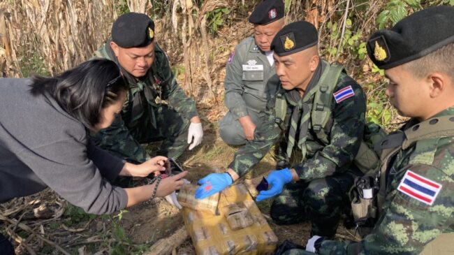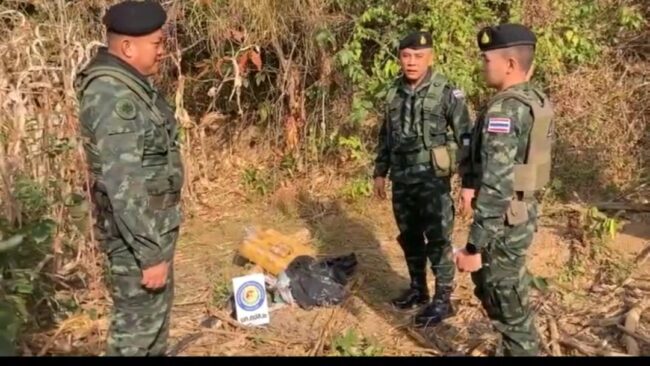 จังหวัดเชียงใหม่ กองกำลังผาเมือง ลาดตระเวนพบขนยาบ้าวิ่งหนีทิ้งยาบ้าแสนเม็ด