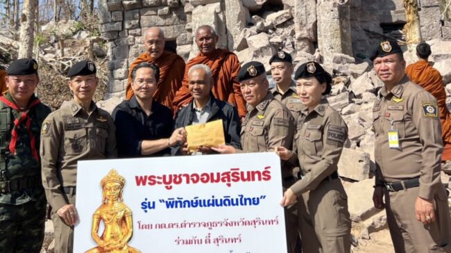 กรรมการตรวจสอบและติดตามการบริหารงานตำรวจ กต.ตร. ตำรวจภูธรจังหวัดสุรินทร์ ร่วมกับ ตี๋ สุรินทร์ พระเครื่อง ได้ถวายปัจจัยเบื้องต้นซึ่งได้จากการจัดสร้าง พระบูชาจอมสุรินทร์ ขนาด 9 นิ้ว และ 5 นิ้ว พร้อมด้วย เหรียญจอมสุรินทร์ 2569 รุ่น พิทักษ์แผ่นดินไทย แด่ หลวงตาเยื้อน ขันติพโล พระธรรมวชิรญาณโกศล เป็นจำนวนเงิน 300,000 บาท เพื่อใช้ในการสถาปนาพื้นที่บริเวณชายแดน
