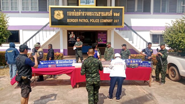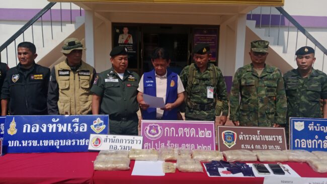 วันที่ 7 กุมภาพันธ์ 2569 ทีกองร้อยตำรวจตระเวนชายแดนที่ 227 อ.เภอเขมราฐ จ.อุบลราชธานี นายเดชภูวิส ภักดีสนิท นายอำเภอเขมราฐ พร้อมด้วยหน่วยงานความมั่นคงในพื้นที่ ตชด. 227 นรข.เขต อบ. สภ.เขมราฐ,กกล.สุรนารี สถานีตำรวจน้ำที่4 และอีกหลายหน่าวยงาน เปิดแถลงแถลงถึงผลของได้ร่วมกันประปรามยาเสพติดตามนโยบายของรัฐบาล หลังจากที่ ร.ต.อ.ครองชัย ยนต์ดัน รองผบ.ร้อย ตชชด.227 อ.เขมราฐ พร้อมกำลังพลในสังกัด ร่วมกันสืบทราบว่า นายจักรพงษ์ อายุ 21ปี กับนายกษิเดช อายุ 19 ปี ชาวอำเภอเขมราฐ จังหวัดอุบลราชธานี จะพากันลำเลียงยาบ้าจากชายแดนแม่น้ำโขง เข้ามาส่งต่อไปยังมรตัวเมืองอุบลราชธานี จึงสนธิกำลังกับหน่วยข้างเคียงดังกล่าว เพื่อสนธิกำลังออกสกัดกั้น ที่ บริเวณถนน