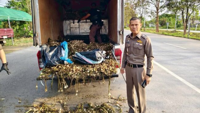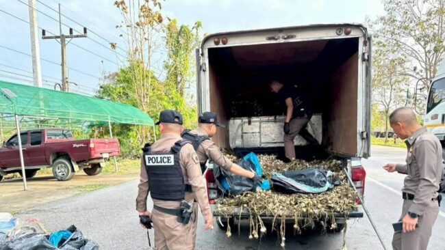 วันนี้ 13 มี.ค. 69 เวลา 15.00 น. พ.ต.อ.วิชัย ไชยอิ่นคำ ผกก.สภ.พาน จ. เชียงราย พ.ต.ท.อธิวัฒน์ อินนันชัย รอง ผกก.ป.สภ.พาน พ.ต.ท.สุรพัศ ธรรมปัญญา สวป.สภ.พาน ร.ต.อ.นพดล แสงคำ หัวหน้าชุดด่านตรวจปูแกง พร้อมเจ้าหน้าที่ตำรวจ สภ.พาน จ.เชียงราย ที่ด่านตรวจปูแกง ตรวจ พบ รถยนต์บรรทุกส่วนบุคคล กระบะตู้ทึบ ยี่ห้อ อีซูซุ รุ่น ดีแม็กซ์ สี ขาว ทะเบียนกรุงเทพมหานคร เข้ามาที่ด่านตรวจ จึงได้เรียกให้หยุดตรวจ เพื่อค้นหาสิ่งของผิดกฎหมาย พบ นายกอ นามสมมุติ ผู้ต้องหา เป็นผู้ขับขี่รถเข้ามาที่ด่านตรวจ มีลักษณะอาการ กระวนกระวาย ให้การวกวนไปมา เจ้าหน้าที่จึงได้แสดงตัวเพื่อขอตรวจค้น ก่อนทำการตรวจค้น ได้แสดงความบริสุทธิ์จนเป็นที่พอใจแล้ว จึงทำการตรวจค้นภายในตู้ทึบท้ายรถ พบต้นกระเทียมสดจำนวนมาก เจ้าหน้าที่ สังเกตเห็นสิ่งผิดปกติว่า ต้นหอมที่บรรทุกมาเริ่มเน่าเสียและส่งกลิ่นเหม็นแล้ว จึงได้ขอทำการโยกย้ายออกจากตัวรถเพื่อตรวจสอบด้านใน จากการตรวจค้น ผลการตรวจค้น พบของกลางจำนวน 10 กระสอบ เมื่อเปิดพิสูจน์ดูภายในกระสอบพบบรรจุยาบ้าเอาไว้ใบละประมาณ 200,000 เม็ด รวมของกลางยาบ้าทั้งหมดจำนวนประมาณ 2,000,000 เม็ด จากผลการตรวจเบื้องต้น พบสารเสพติด เมทแอมเฟตามีน ในปัสสาวะของ ผู้ต้องหา จากการตรวจสอบเบื้องต้นทราบว่า ยาเสพติดทั้งหมดถูกขนมาจากมาจากพื้นที่ชายแดนไทย-เมียนมา ด้าน อ.แม่ฟ้าหลวง จ.เชียงราย เพื่อจะนำไปส่งที่ จ.พระนครศรีอยุธยา โดยได้นำกระเทียมไปวางทับกระสอบบรรจุยาเสพติดเอาไว้เพื่ออำพรางและกลบกลิ่นยาเสพติด จากนั้นเจ้าหน้าที่ตำรวจชุดจับกุมจึงได้นำตัวผู้ต้องหานำส่ง พนักงานสอบสวน สภ.พาน ดำเนินคดีตามกฎหมายต่อไป