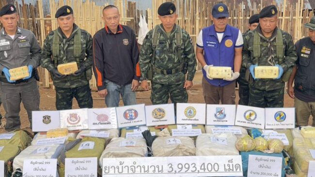 ทำการลาดตระเวน เฝ้าตรวจ เพื่อป้องกันและสกัดกั้นการกระทำผิดตาม พระราชบัญญัติประมวลกฎหมาย ยาเสพติด บริเวณ ต.เปียงหลวง อ.เวียงแหง จ.เชียงใหม่ จนกระทั่ง เมื่อวันที่ 11 เมษายน 2569 เวลา 0830 ตรวจพบบุคคลชาย จำนวน 1 คน และ บุคคลหญิง 1 คน อยู่ภายในบริเวณที่พักชั่วคราว กระท่อม ท้ายหมู่บ้านเปียงหลวง หน่วยจึงได้แสดงตัวเพื่อขอตรวจค้น แต่บุคคลดังกล่าว เมื่อเห็นเจ้าหน้าที่ทหาร จึงได้วิ่งหลบหนี โดยใช้ความชำนาญในภูมิประเทศสามารถหลบหนีไปได้ หน่วยจึงเข้าตรวจสอบพื้นที่พักชั่วคราว กระท่อม ผลการปฏิบัติ สามารถตรวจยึดของกลาง กระสอบดัดแปลงเป็นเป้สะพายหลัง จำนวน 20 กระสอบ ภายในบรรจุ ยาเสพติดให้โทษประเภท 1 ยาบ้า จ านวน 3,993,4000 เม็ด และฝิ่นดิบ จำนวน 3 ก้อน รวมประมาณ 4.8 กิโลกรัม และต่อมา พลตรี สาธิต ไวยนนท์ ผู้บัญชาการกองกำลังผาเมือง มอบหมายให้ พันเอก อำนาจ วชิรศักดิ์โสภานะ ผู้บังคับหน่วยเฉพาะกิจไชยานุภาพ และหน่วยงานที่เกี่ยวข้องลงพื้นที่เพื่อแถลงข่าว การตรวจยึดยาเสพติดจำนวน ดังกล่าว หลังจากนั้นจึงได้น าของกลางทั้งหมดส่งให้กับ สถานีตำรวจภูธรเวียงแหง เพื่อดำเนินการ ตามกฎหมายต่อไป